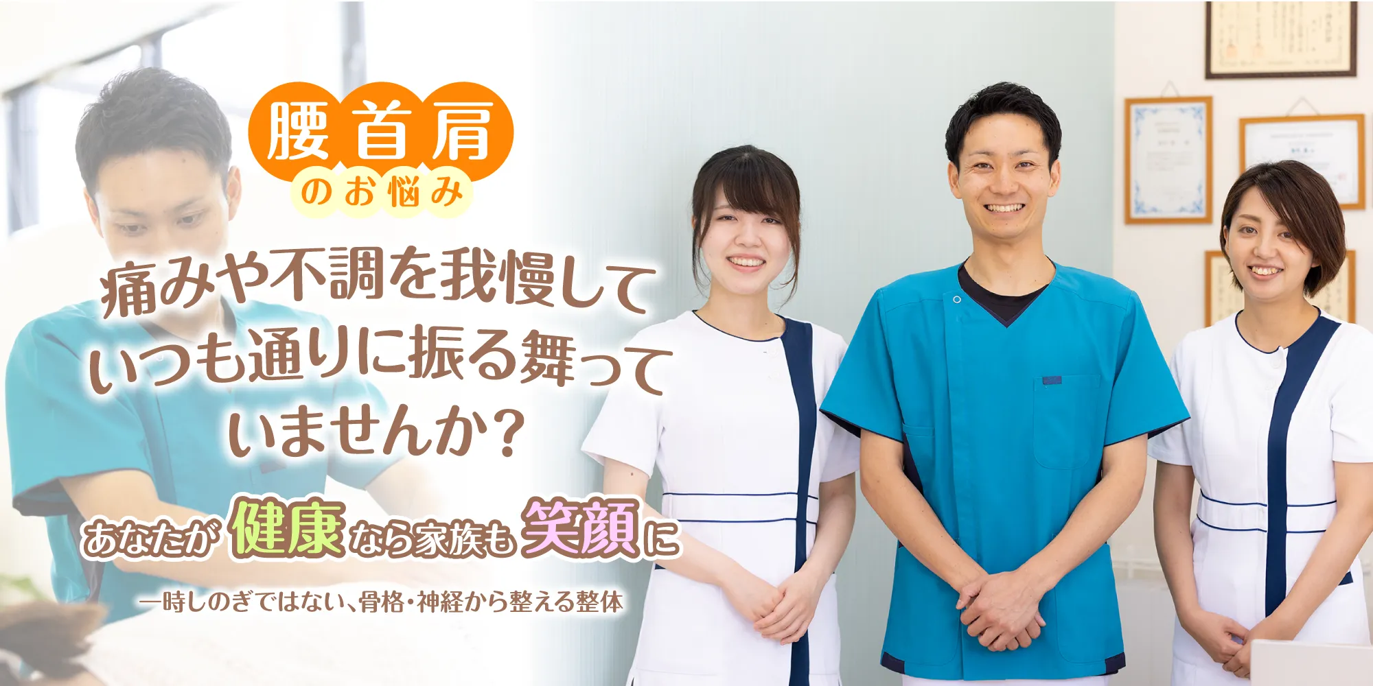 患者さんそれぞれの体質や症状に合わせて、最適な施術法を提案します。また、同院ではアプローチ方法の幅広さが魅力で、一般的な整体やカイロ、マッサージ、ストレッチやエクササイズの指導、自宅でできるセルフケアのアドバイスまで、患者さんに最適なケアを提供しています。