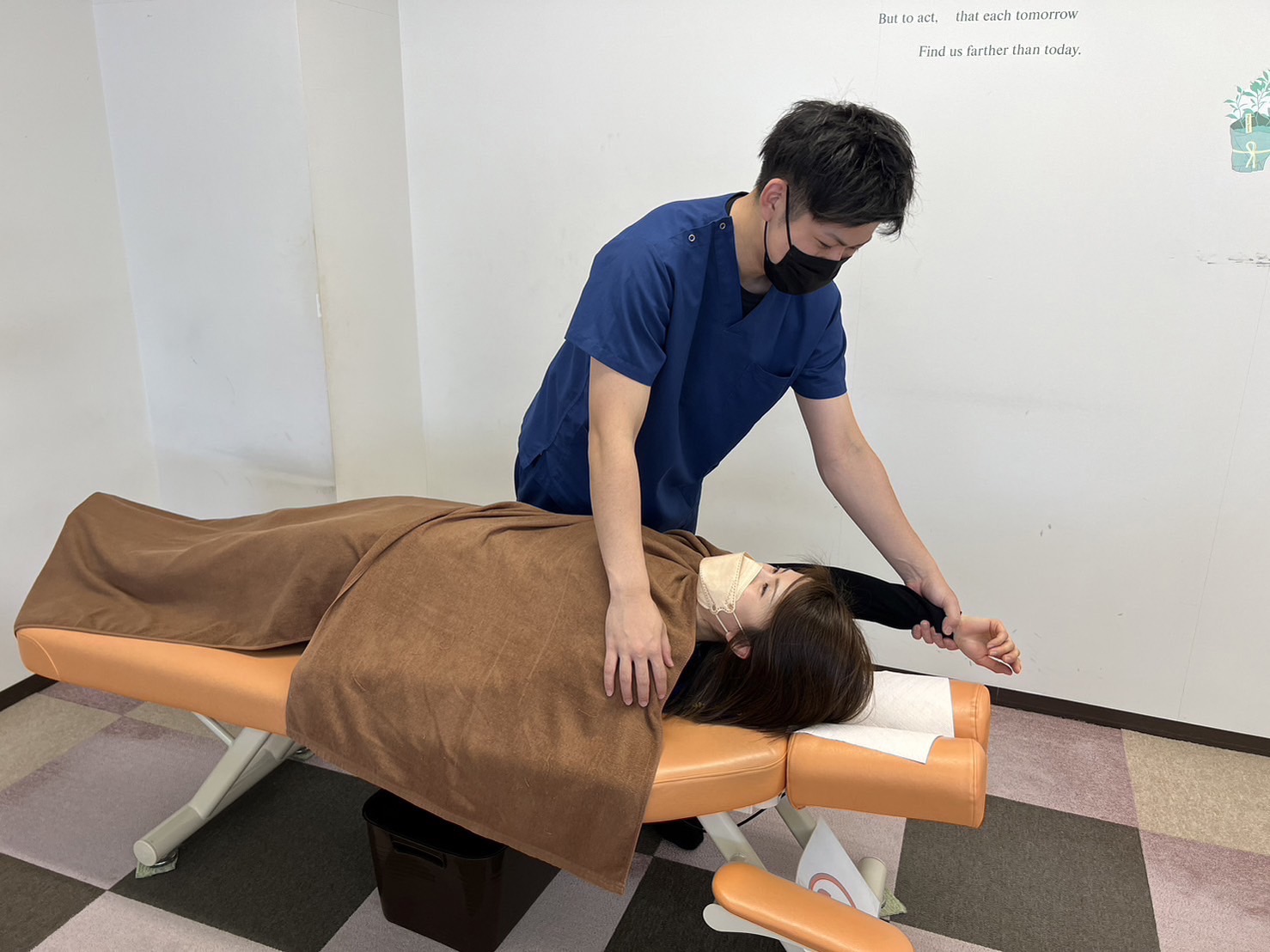 施設内は、清潔感があり落ち着いた雰囲気で、リラックスして治療を受けられるよう心がけられています。最新の治療機器はもちろん、患者一人ひとりの身体の状態に合わせて調整できる治療ベッドなど、快適さと機能性を追求した設備が整っています。
